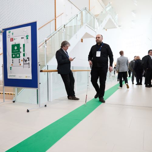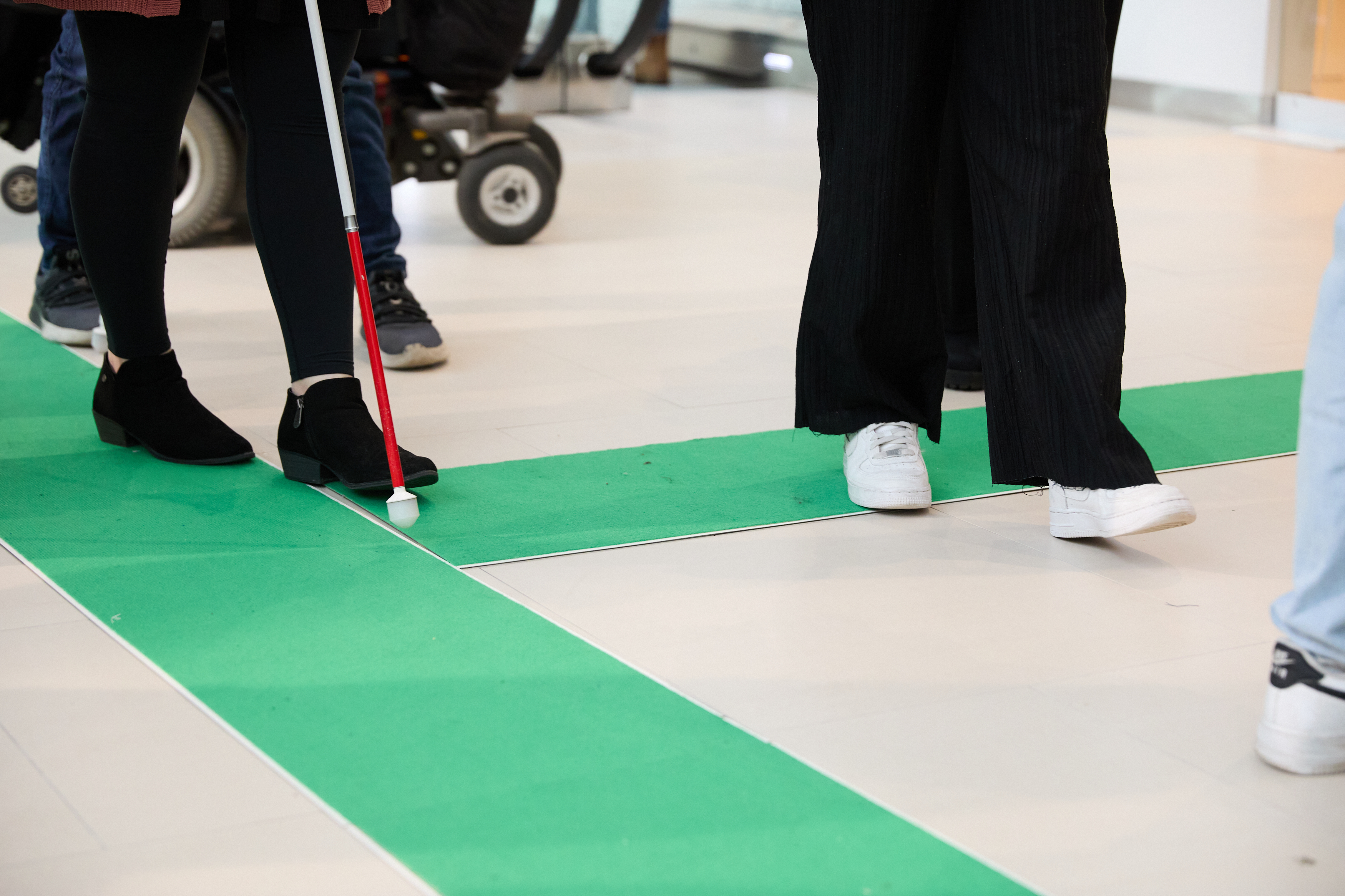 Tactile flooring is placed throughout the conference building to aid navigation to key areas.